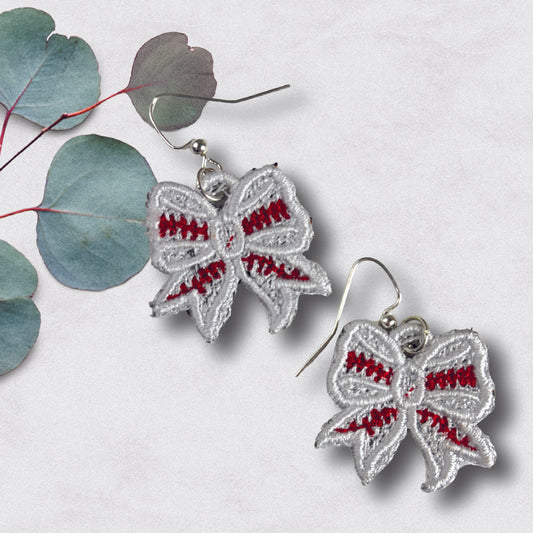Baseball Bow Earrings - Embroidered