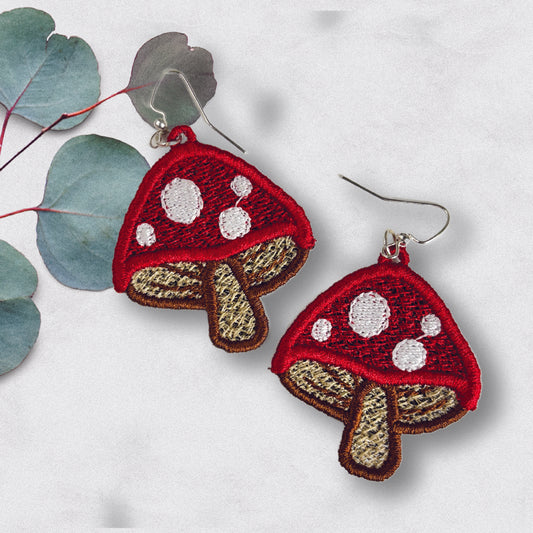 Mushroom Earrings - Embroidered