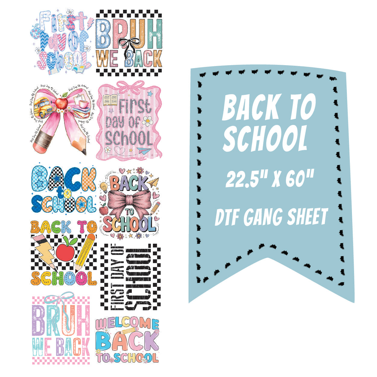 Get ready for the school season with our Back To School DTF Gang Sheet, measuring 22.5x60". Perfect for creating vibrant, durable transfers, this sheet helps you produce multiple high-quality designs efficiently. Ideal for customizing apparel and accessories, it ensures your back-to-school projects stand out with crisp, lasting prints. Elevate your creativity and meet demand with ease using this versatile DTF gang sheet.