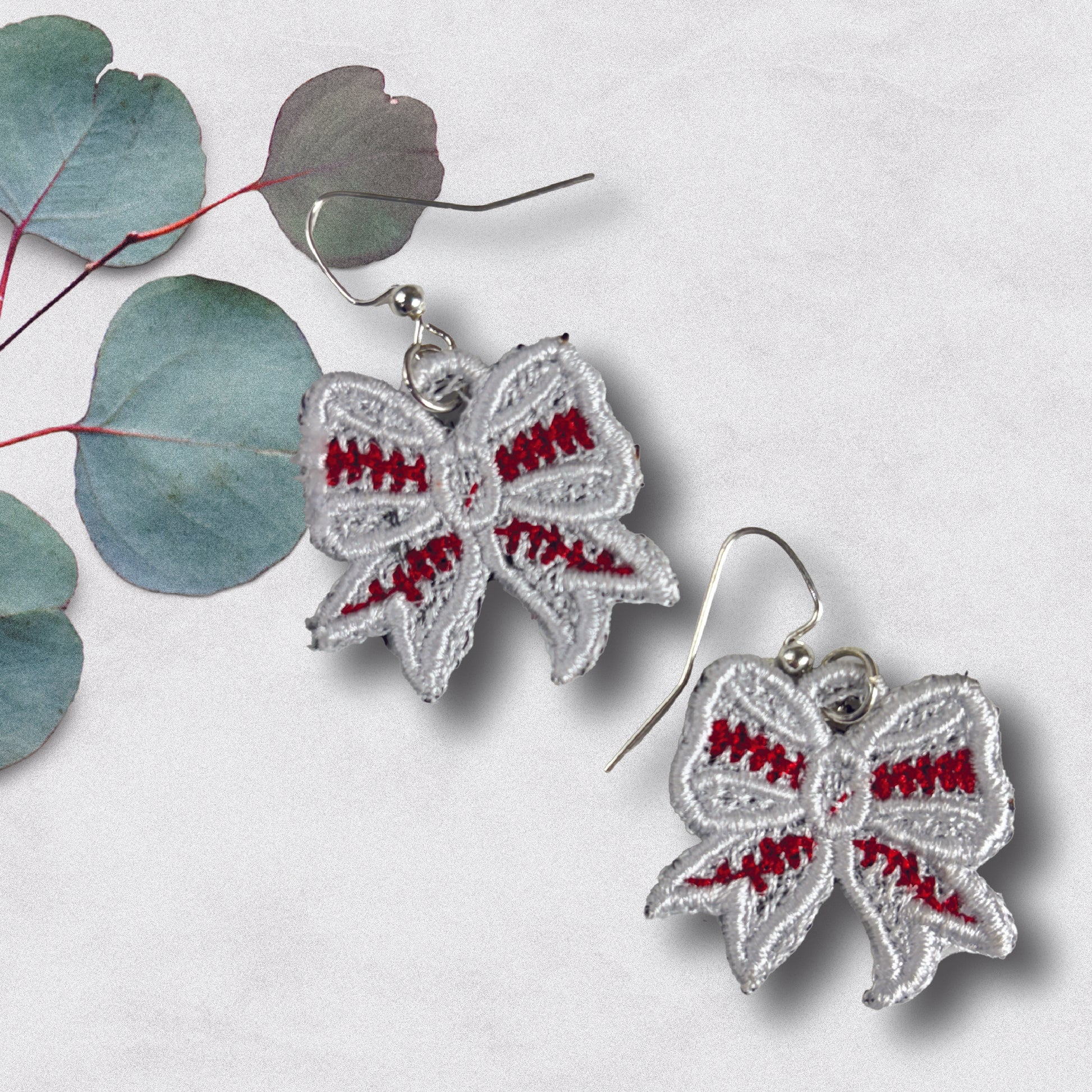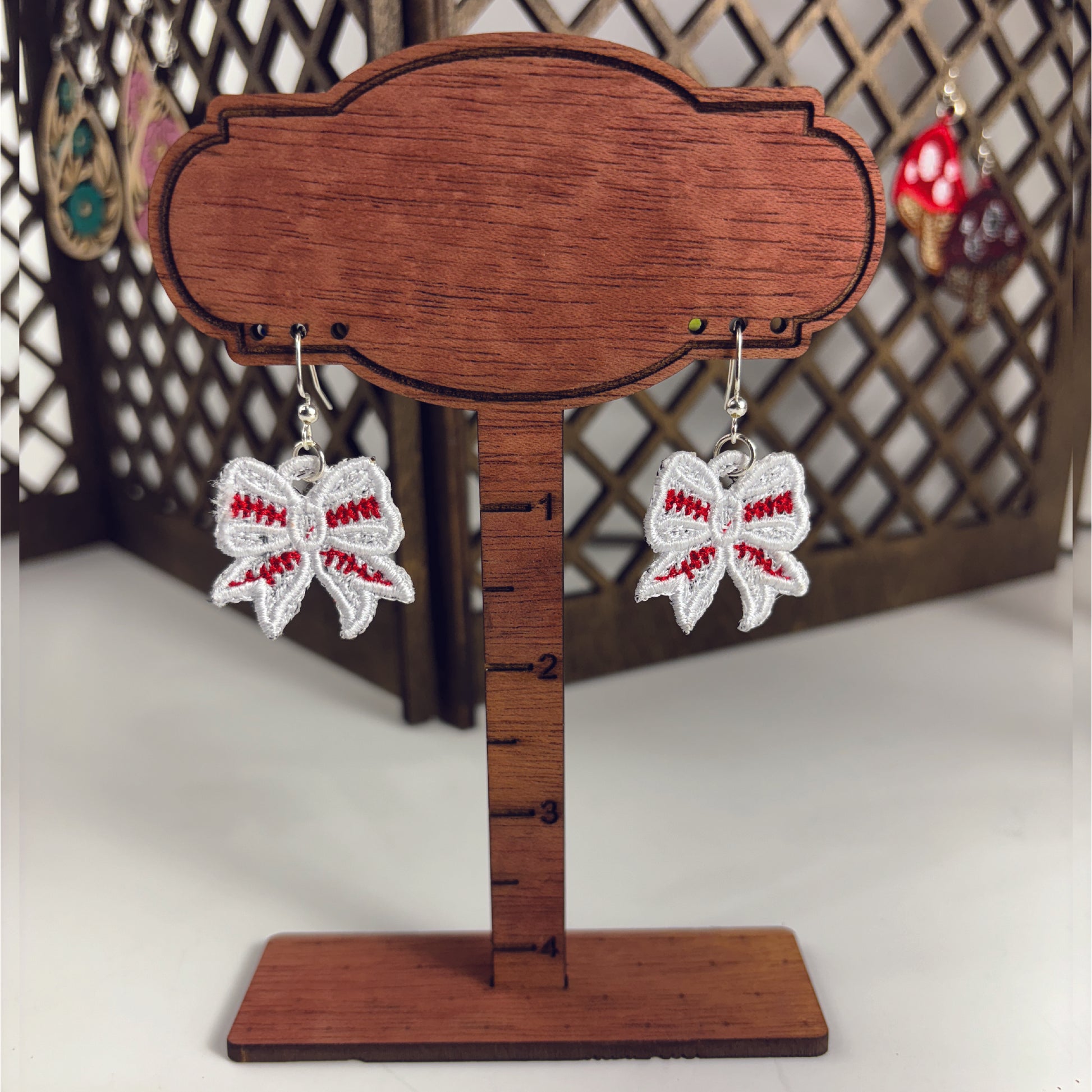 Hit a home run in style with these embroidered baseball bow earrings! Featuring a crisp white bow with red stitching that screams “Let’s play ball!”—these lightweight charmers are perfect for game days, team moms, or anyone who lives for those ballpark vibes. Cute, sporty, and ready to cheer right alongside you!