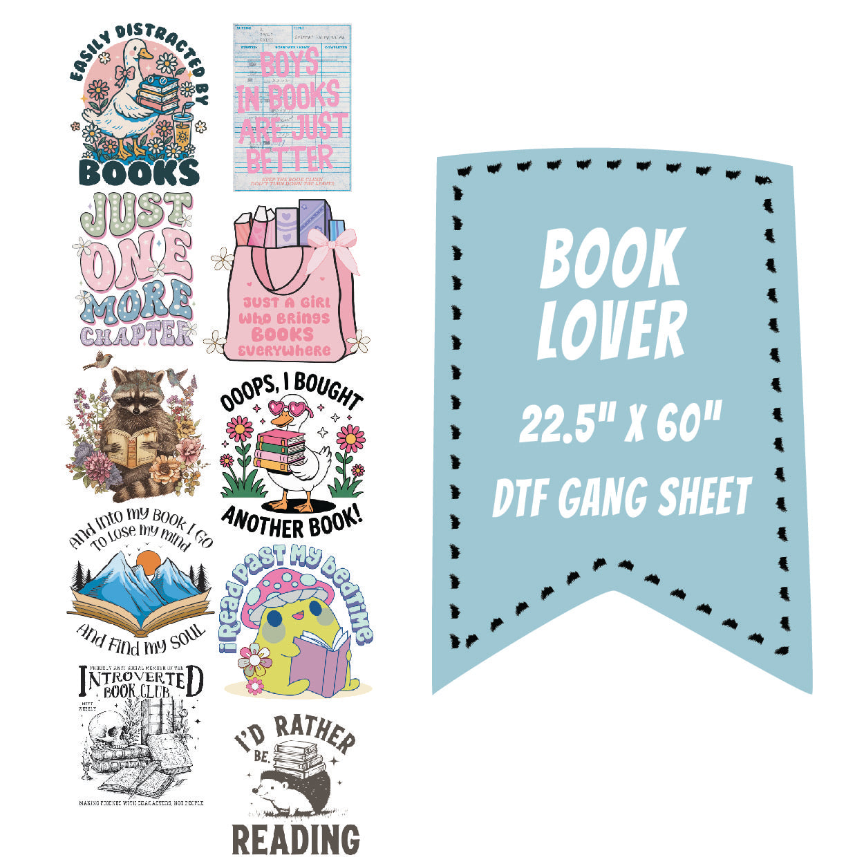 Elevate your creative projects with the Book Lover DTF Gang Sheet, measuring 22.5x60". Perfect for book enthusiasts and crafters alike, this high-quality transfer sheet delivers vibrant, detailed designs that bring your ideas to life. Its generous size allows for multiple prints, making it ideal for personalizing gifts, apparel, and accessories. Unlock endless possibilities and showcase your passion for reading with ease and style.