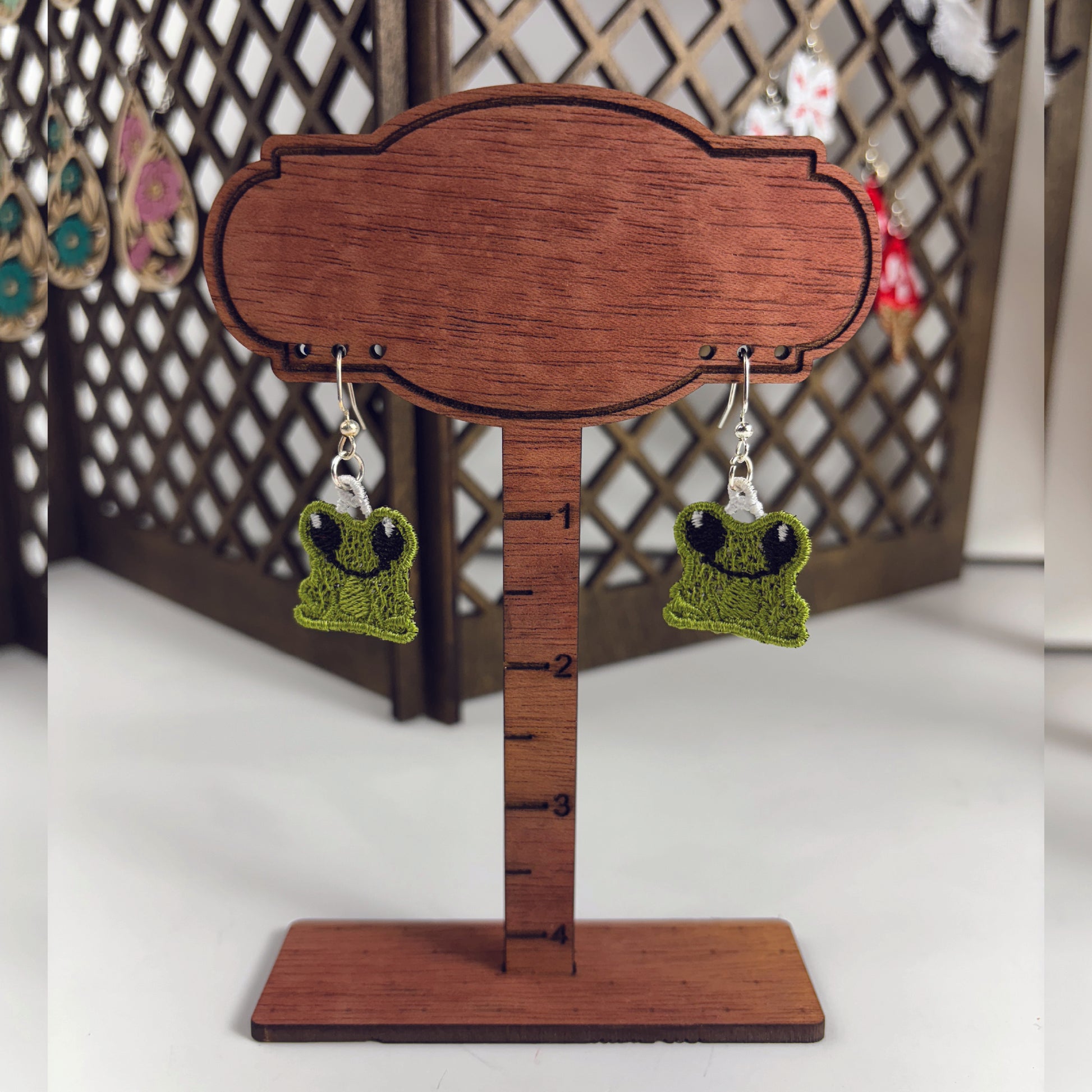 Cute Frog Earrings - Embroidered