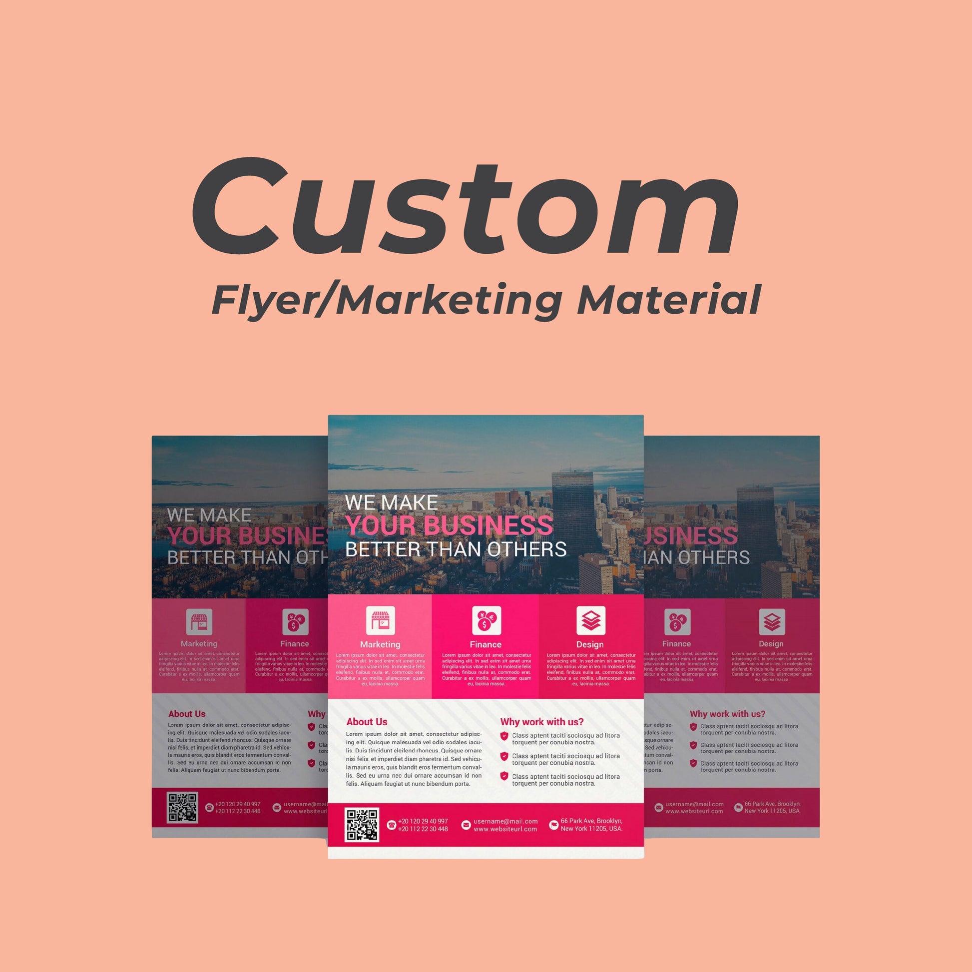 Get your marketing game off the ground with our Flyers/Marketing Design service! Professionally designed flyers and marketing materials that will make your business stand out and boost your sales. Say goodbye to boring designs and hello to eye-catching and effective marketing materials!