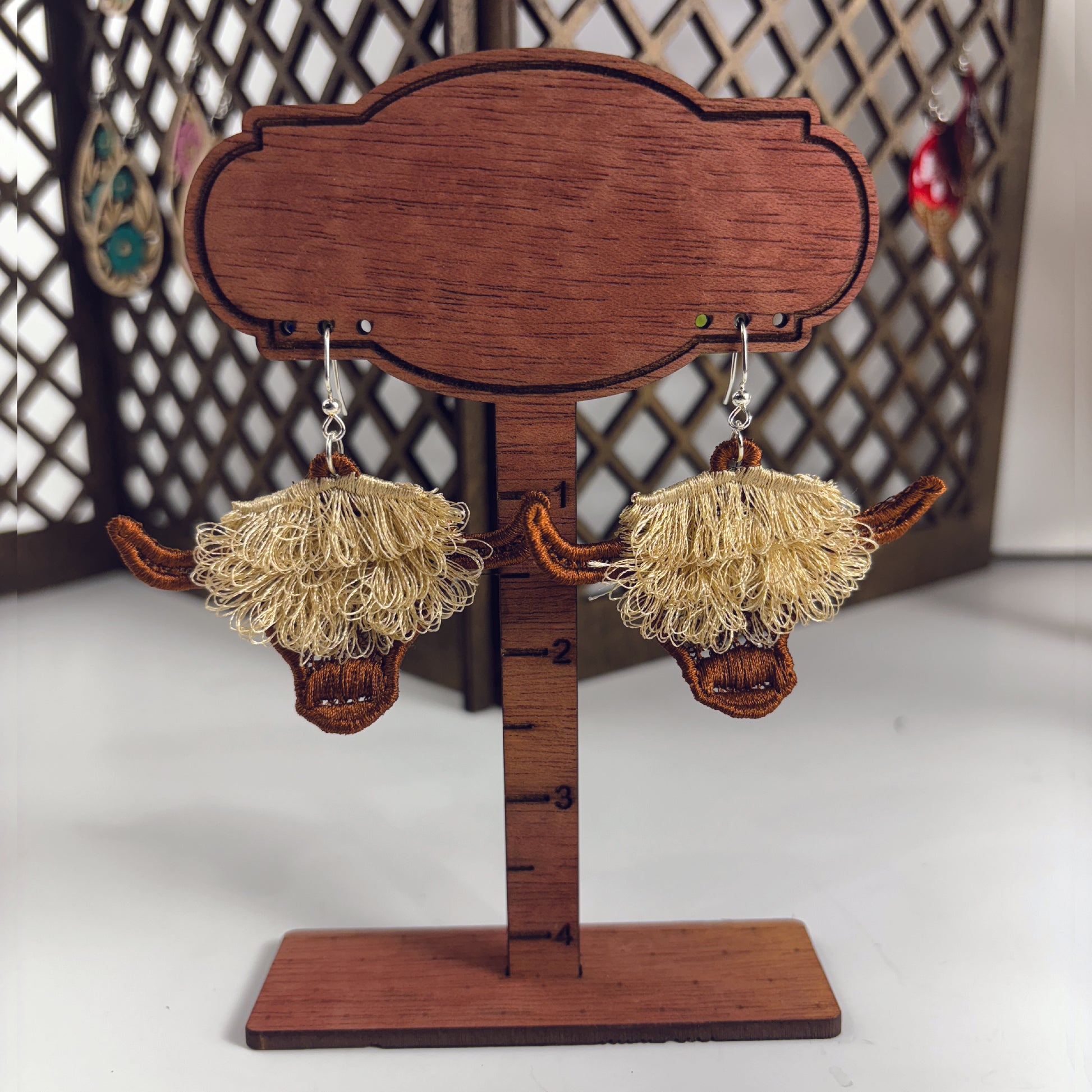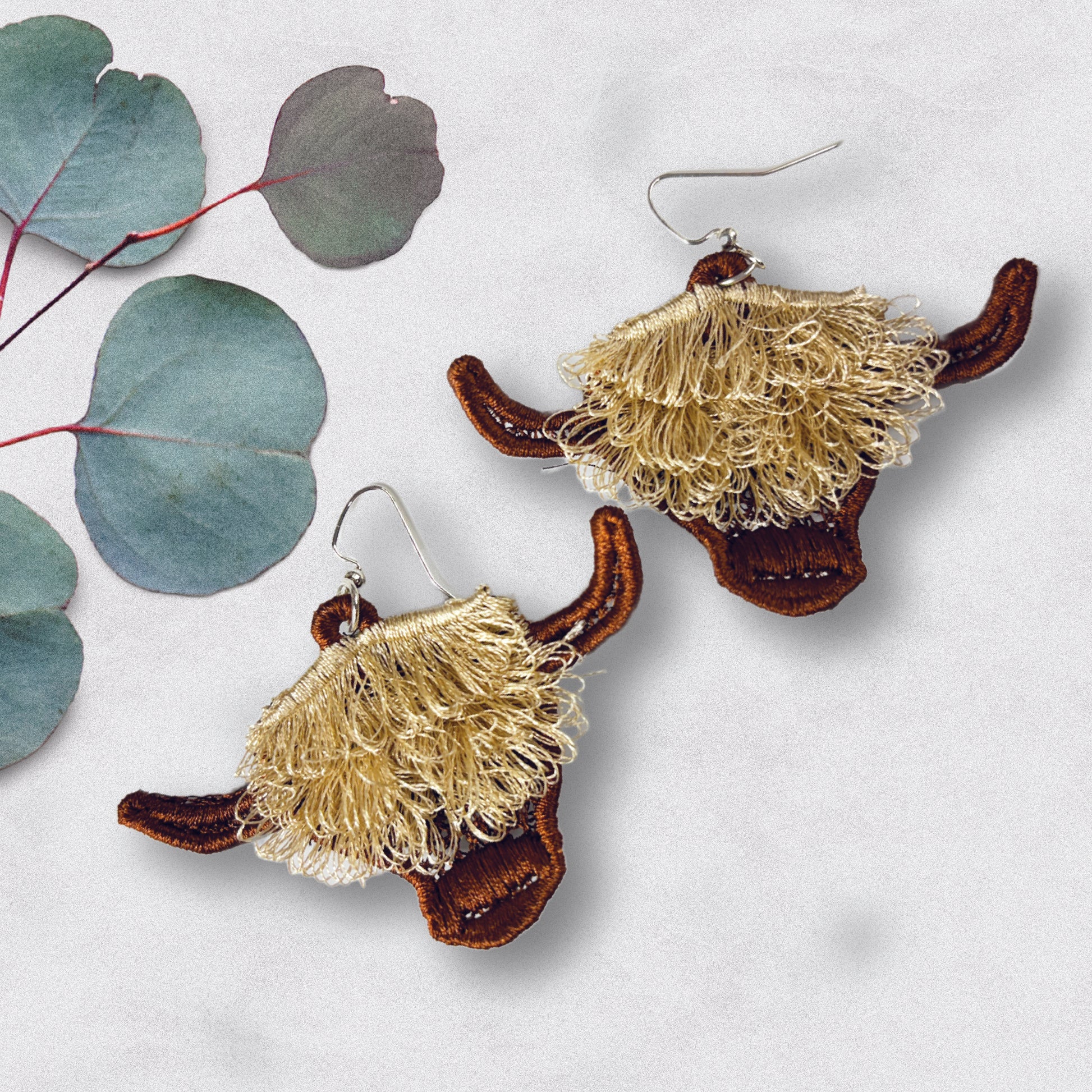 These Highland cow earrings are mooo-ving up the accessory game! With their wild fringe hair and iconic longhorn silhouette, they’re the perfect blend of sassy and rustic charm. Choose from black and white or golden brown to match your favorite bovine vibes. These babies are sure to spark smiles and udder delight!