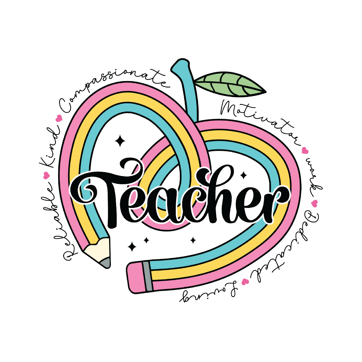 Get this cute Teacher Pencil Apple Design! This design is sure to impress!!
